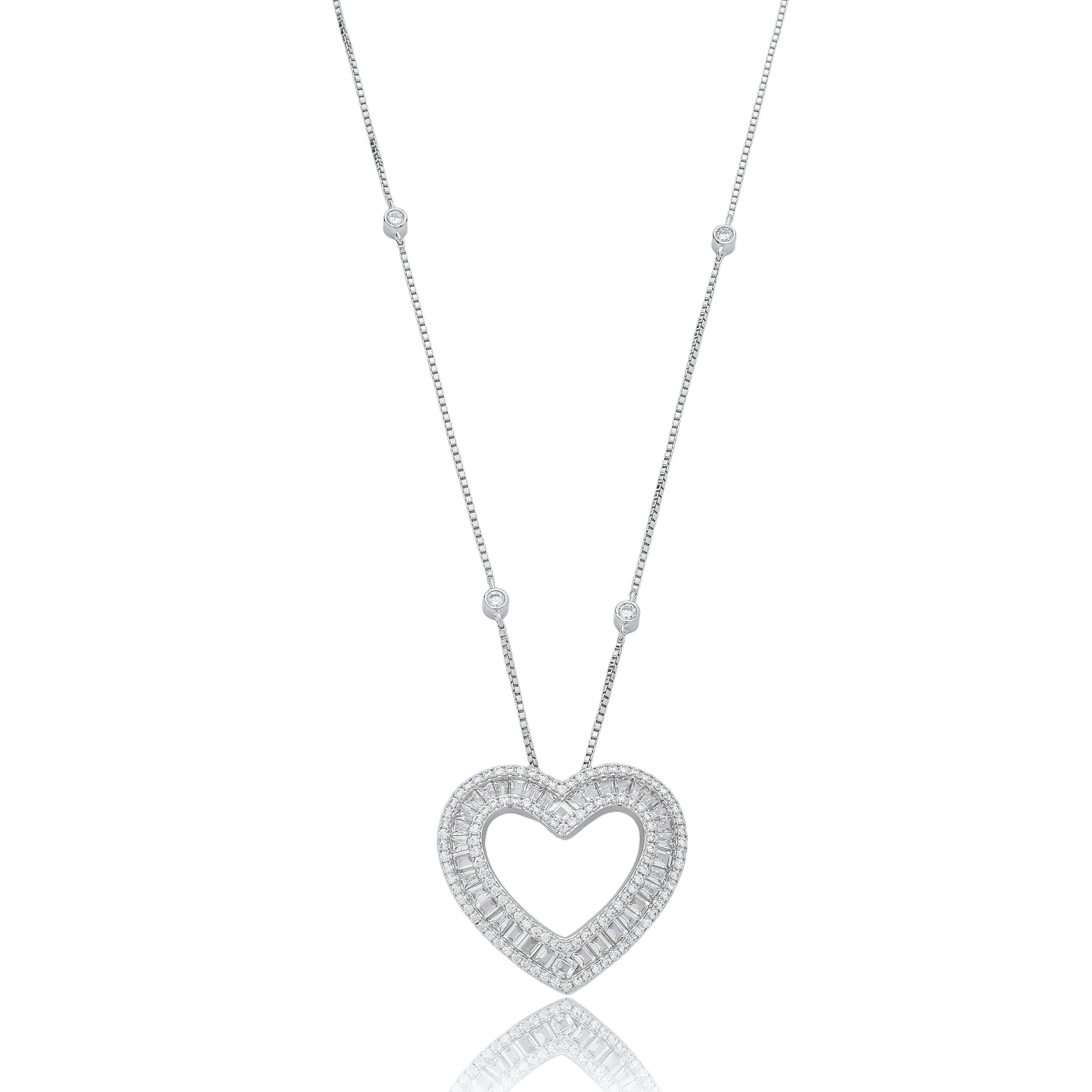 Colar com pingente de coração cravejado de zirconia cristal banho em rodio branco