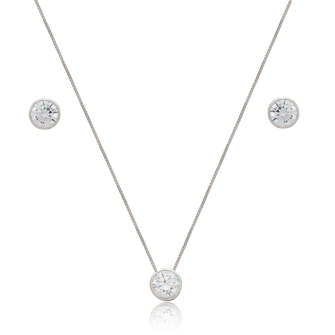 Conjunto de brinco e colar cravejado de zircônia cristal
