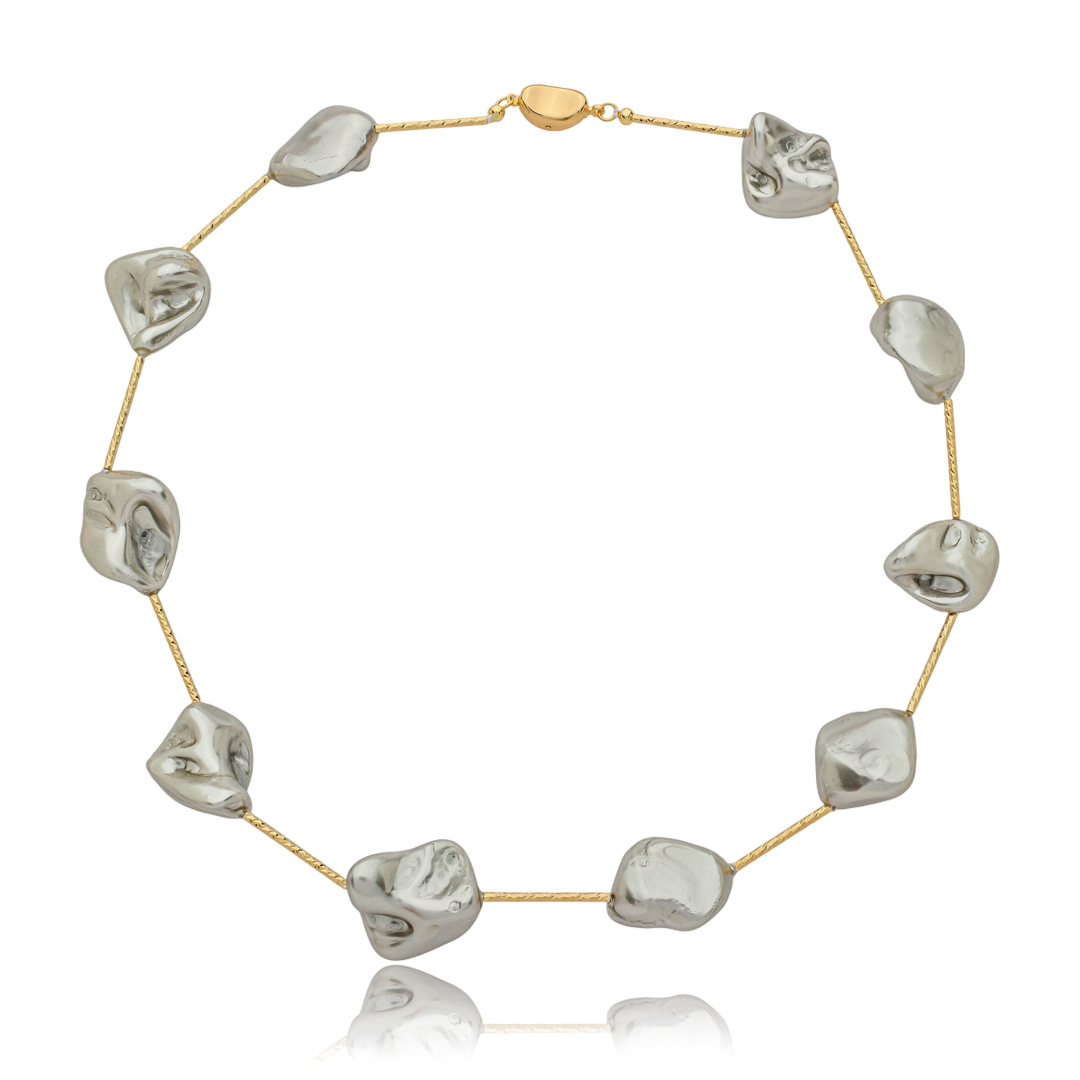 O colar de pérola banhado a ouro 18k é uma peça sofisticada e atemporal, que combina tradição e ousadia em uma única joia. O banho de ouro 18k garante não só um brilho intenso, mas também a durabilidade da peça, tornando-a uma escolha perfeita para ocasiões especiais ou para o dia a dia. Composto por pérolas shell, que adicionam um toque de delicadeza e elegância, este colar traz a beleza clássica das pérolas, mas com um toque moderno e arrojado, refletindo a fusão entre o tradicional e o contemporâneo. Ideal para quem busca uma peça que une estilo e sofisticação de forma única.