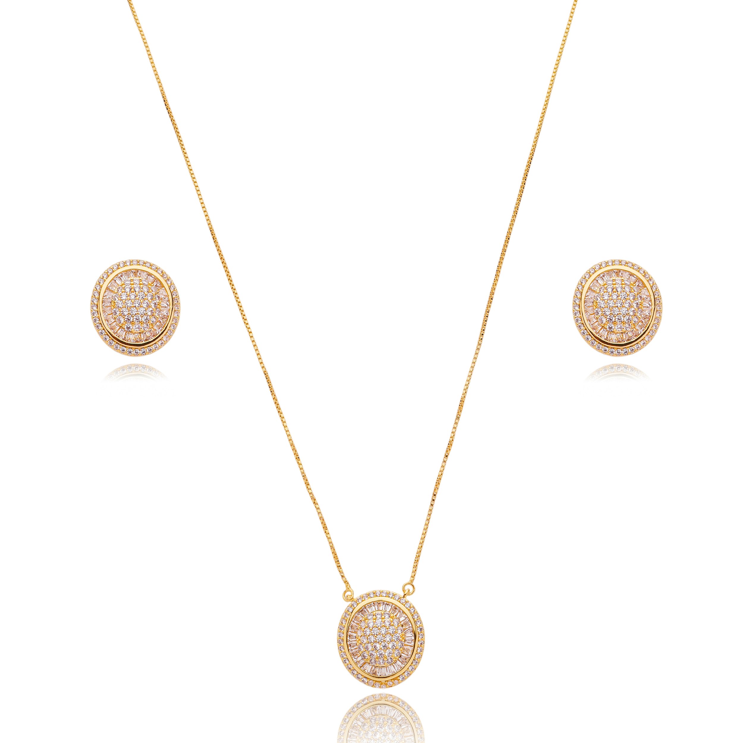 Conjunto de brinco e colar cravejado de zircônia cristal
