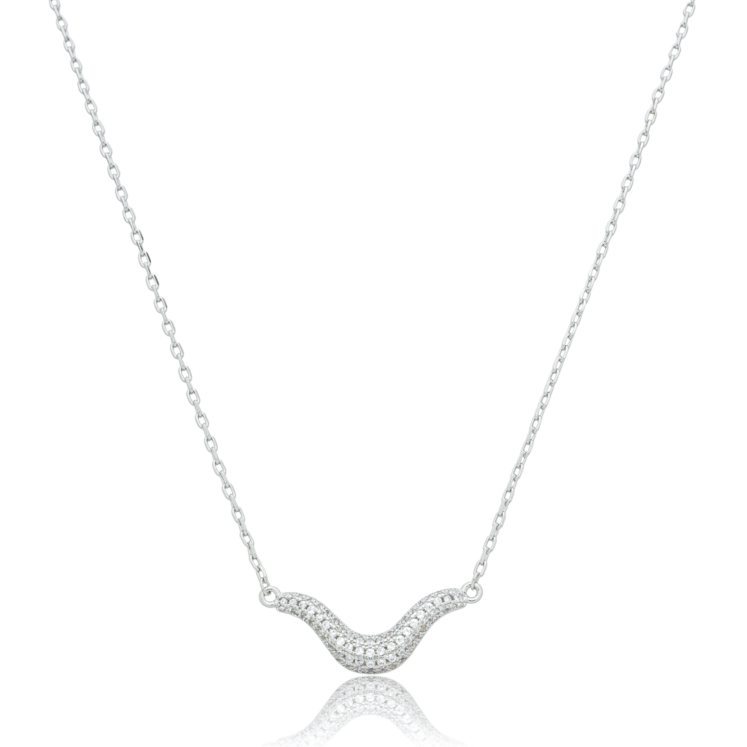 Colar com pingente cravejado de zirconia cristal banho em rodio branco