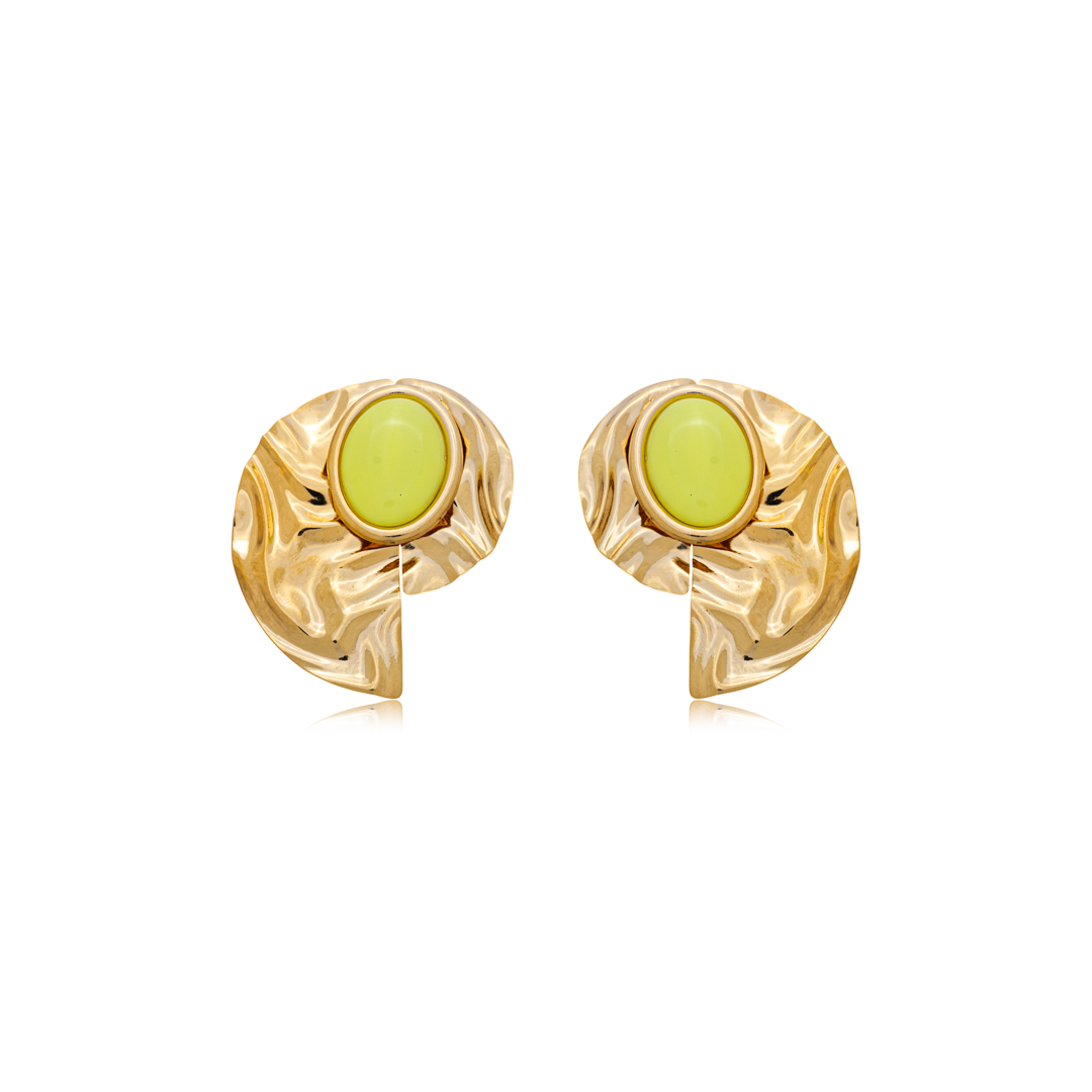 Brinco orgânico liso com detalhe esmaltado amarelo