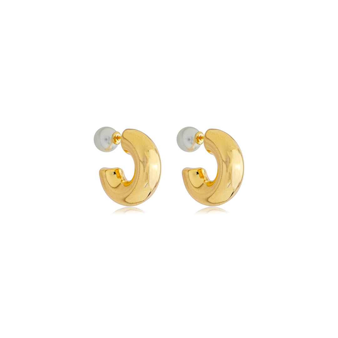 Brinco de argola liso com detalhe em pérola