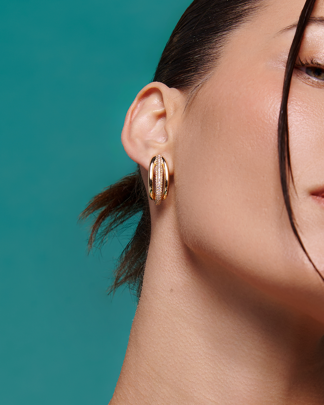 Brinco de argola cravejado de zircônia cristal