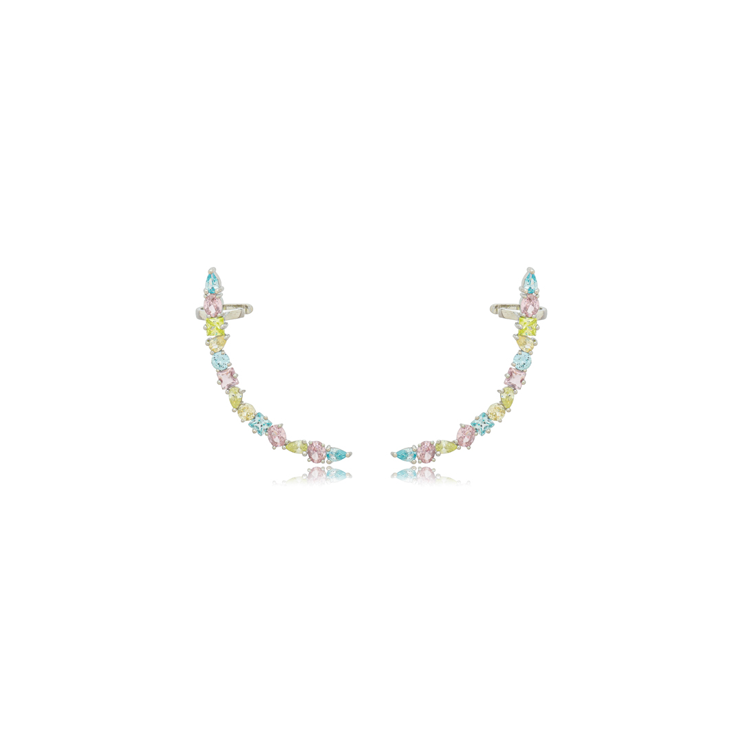 Brinco ear cuff cravejado de zircônia rainbow