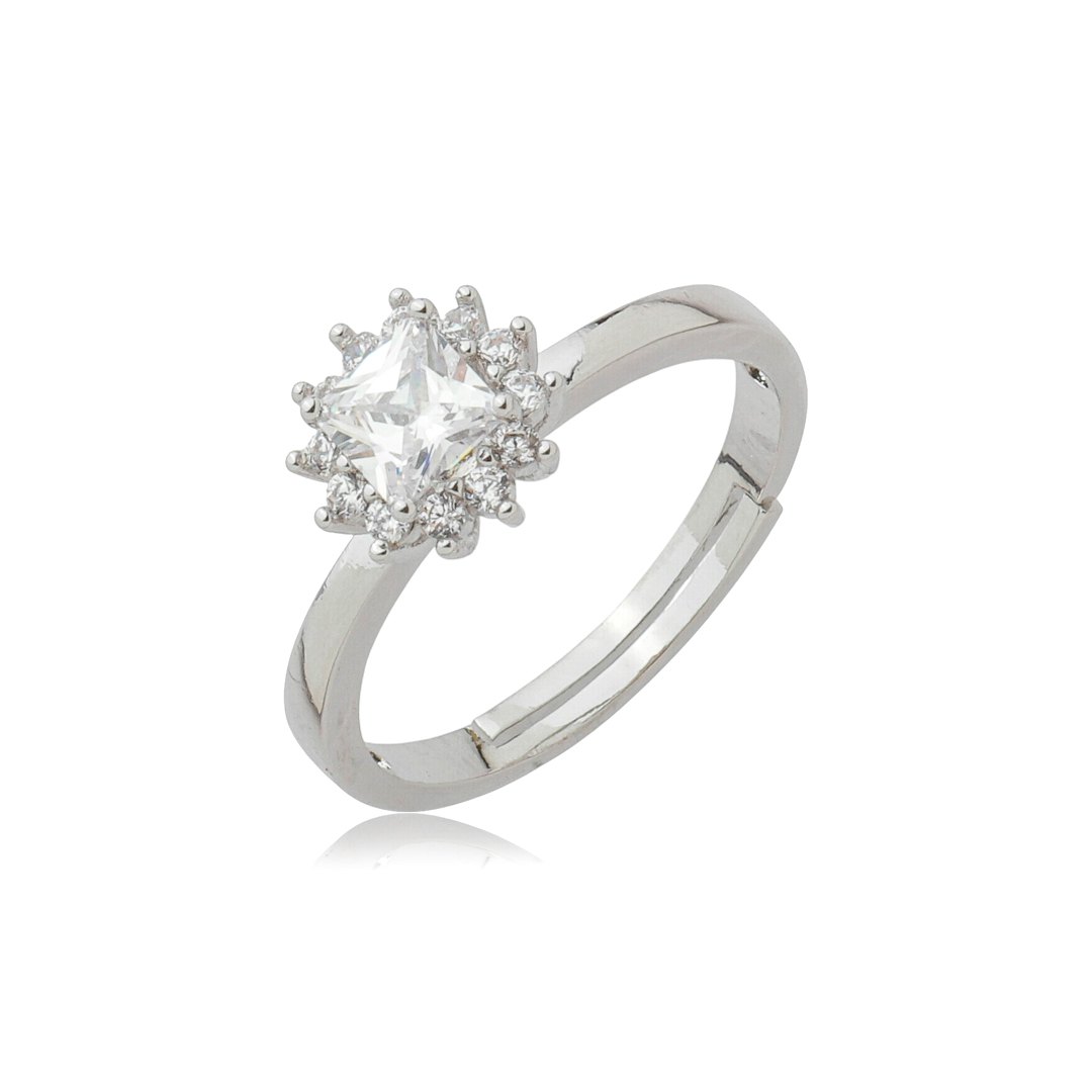 Anel cravejado de zircônia cristal banho em Ródio branco