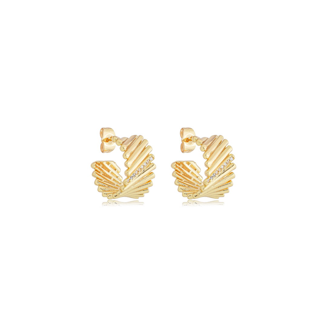Com um design cravejado de zircônias, ele brilha intensamente e adiciona um toque de sofisticação a qualquer look. O banho de ouro de 18k garante durabilidade e brilho duradouro. As zircônias são pedras sintéticas de alta qualidade, criadas para imitar a aparência da diamante. Se você está procurando um acessório de semijoias, este brinco é a escolha certa.
