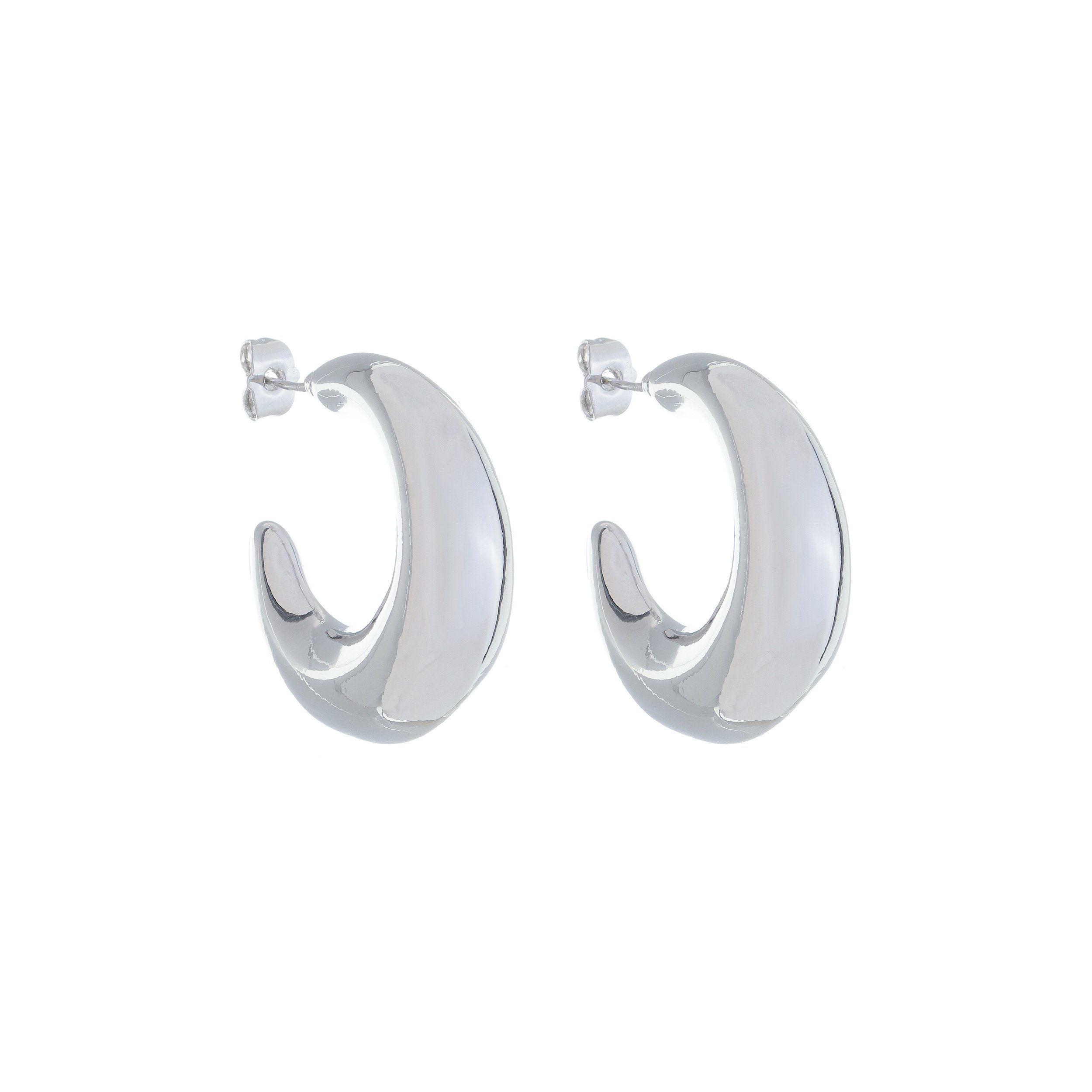 Brinco de argola liso banho em rodio branco