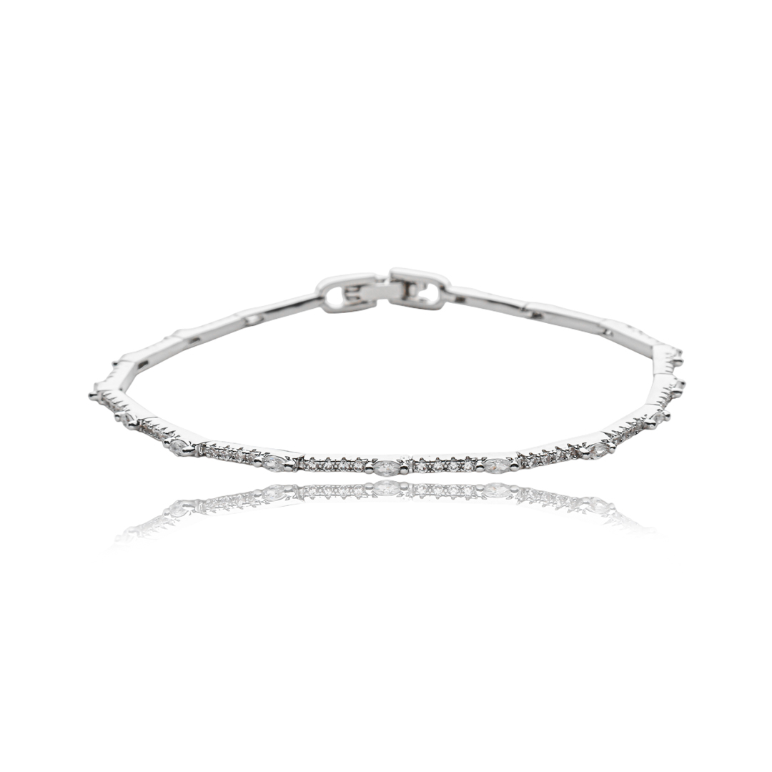 Nosso bracelete é uma peça lisa, sofisticada e atemporal, perfeita para compor qualquer look com elegância. Com banho de ródio branco, ele oferece um brilho intenso e acabamento refinado, que valoriza ainda mais o seu estilo.