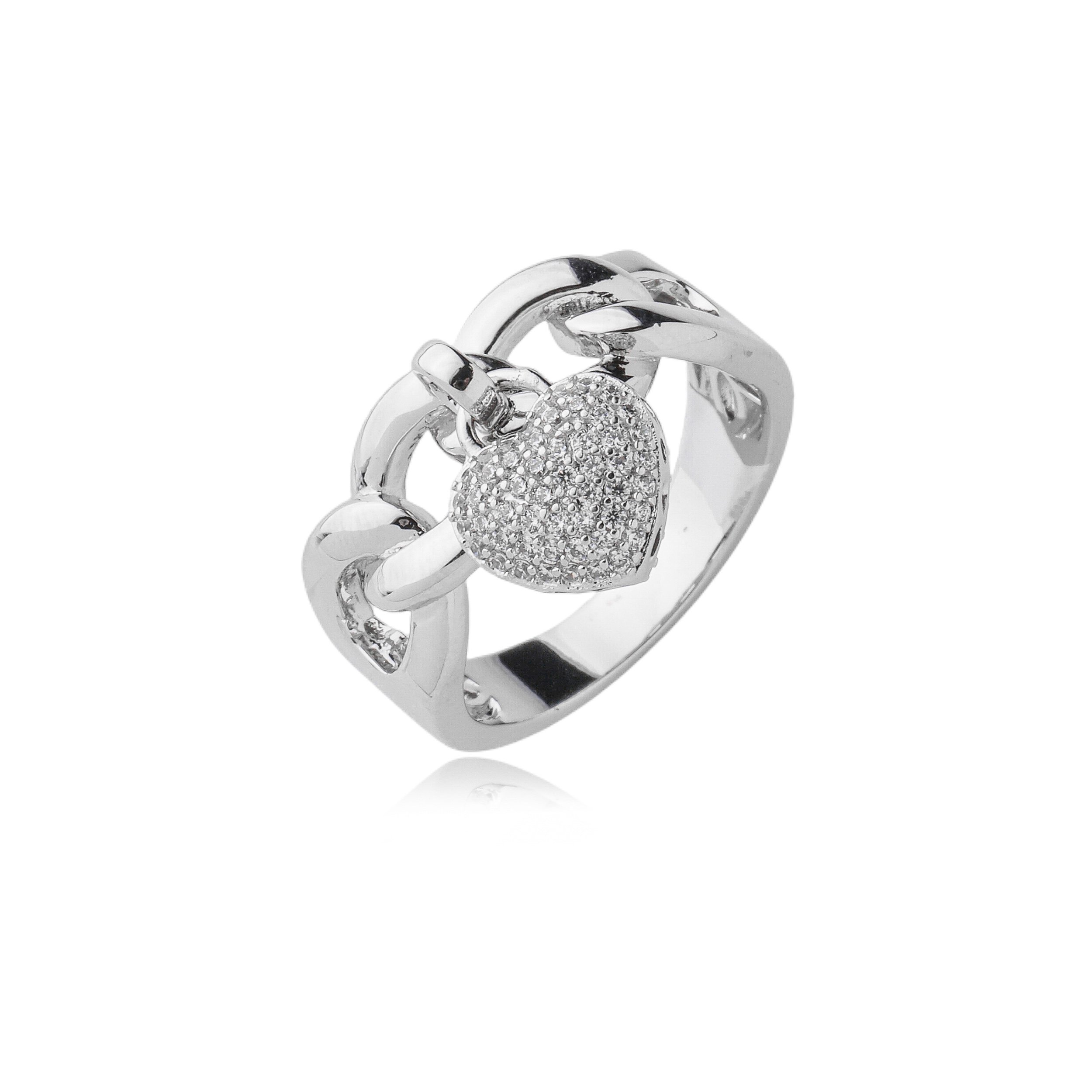 Anel de coração com zirconia cristal banho em rodio branco