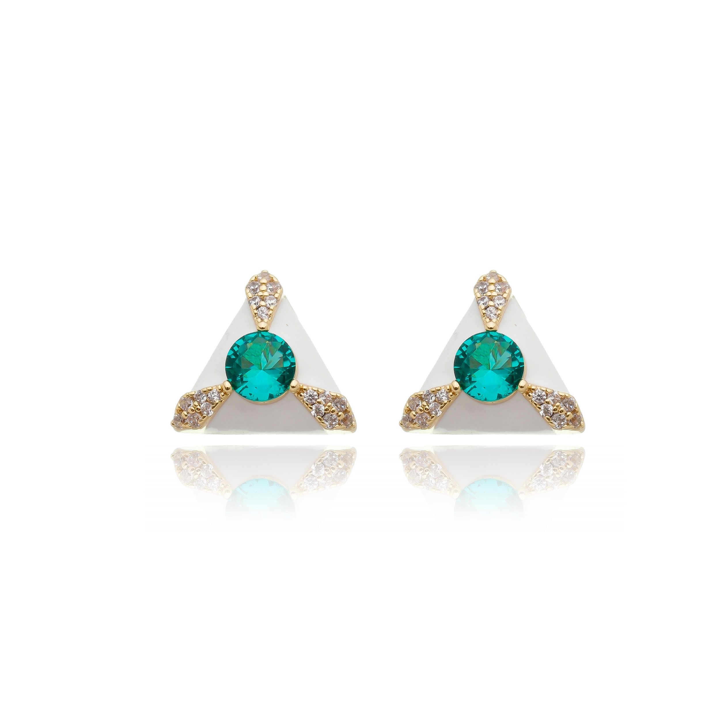 Brinco esmaltado branco com zirconia na cor esmeralda banho em Ouro 18K