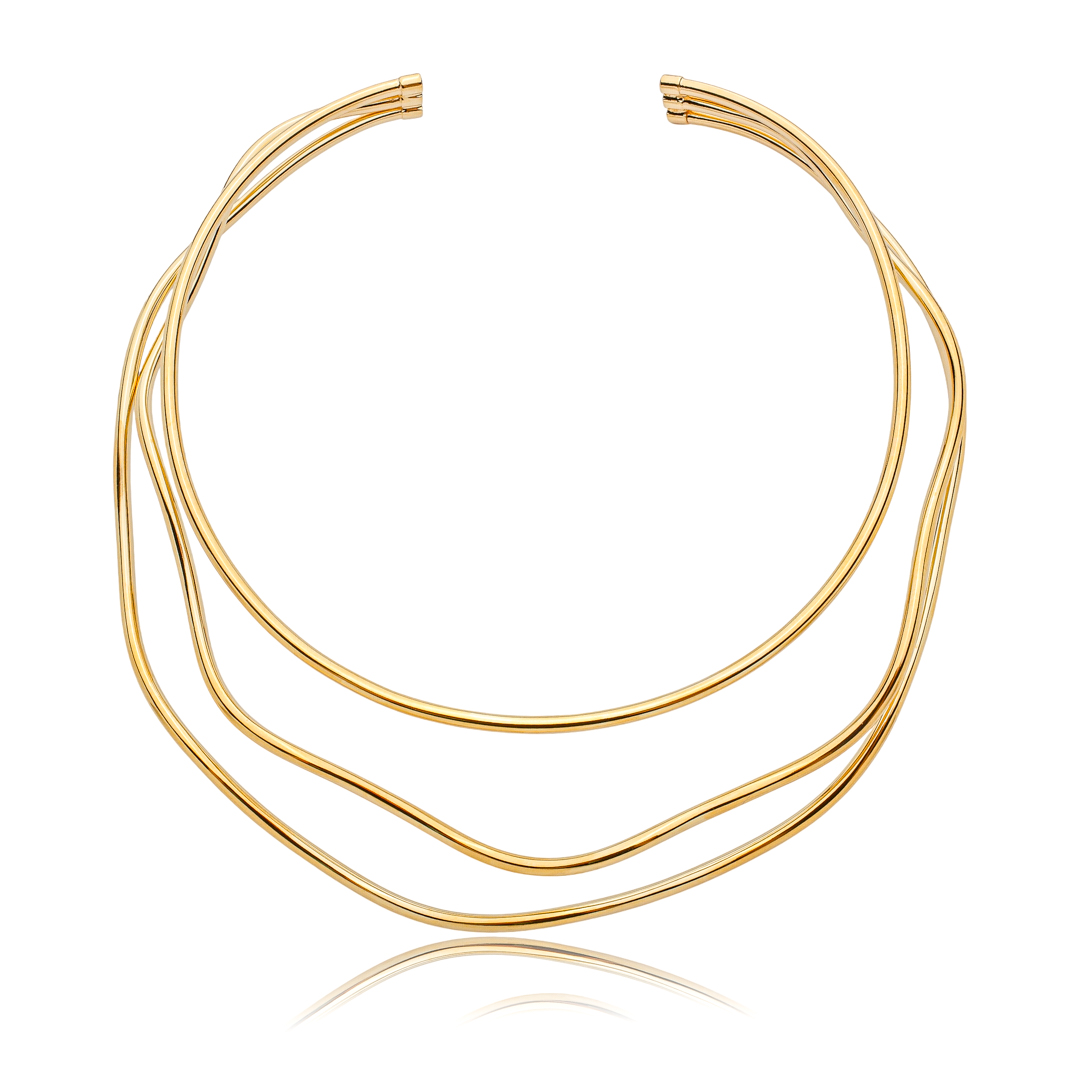 Este colar é uma joia elegante e sofisticada que apresenta um aro dourado com banho em ouro 18k. Feito com materiais de alta qualidade, este colar tem um brilho único e duradouro que adiciona um toque de luxo e glamour a qualquer visual. Com um design minimalista e moderno, este colar pode ser usado sozinho ou combinado com outros colares para criar um look ainda mais deslumbrante. Comprimento ajustável para adaptar-se a diferentes tamanhos e estilos de roupas. Ideal para quem busca um acessório elegante e versátil.