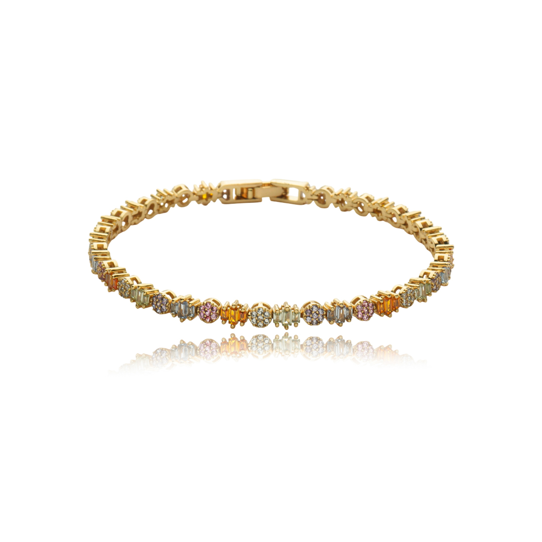 Pulseira cravejada de zirconia rainbow banho em ouro 18k