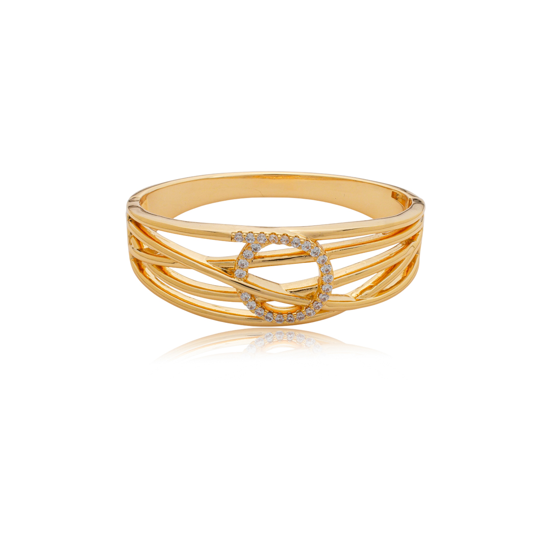 Delicadeza e sofisticação definem este bracelete exclusivo. Banhado a ouro 18k, revela um brilho luxuoso e acabamento de alta qualidade, garantindo durabilidade e resistência ao desgaste. As zircônias cuidadosamente aplicadas trazem um toque de brilho sutil, elevando a elegância do design. Um bracelete atemporal, perfeito para compor looks refinados com leveza e estilo.