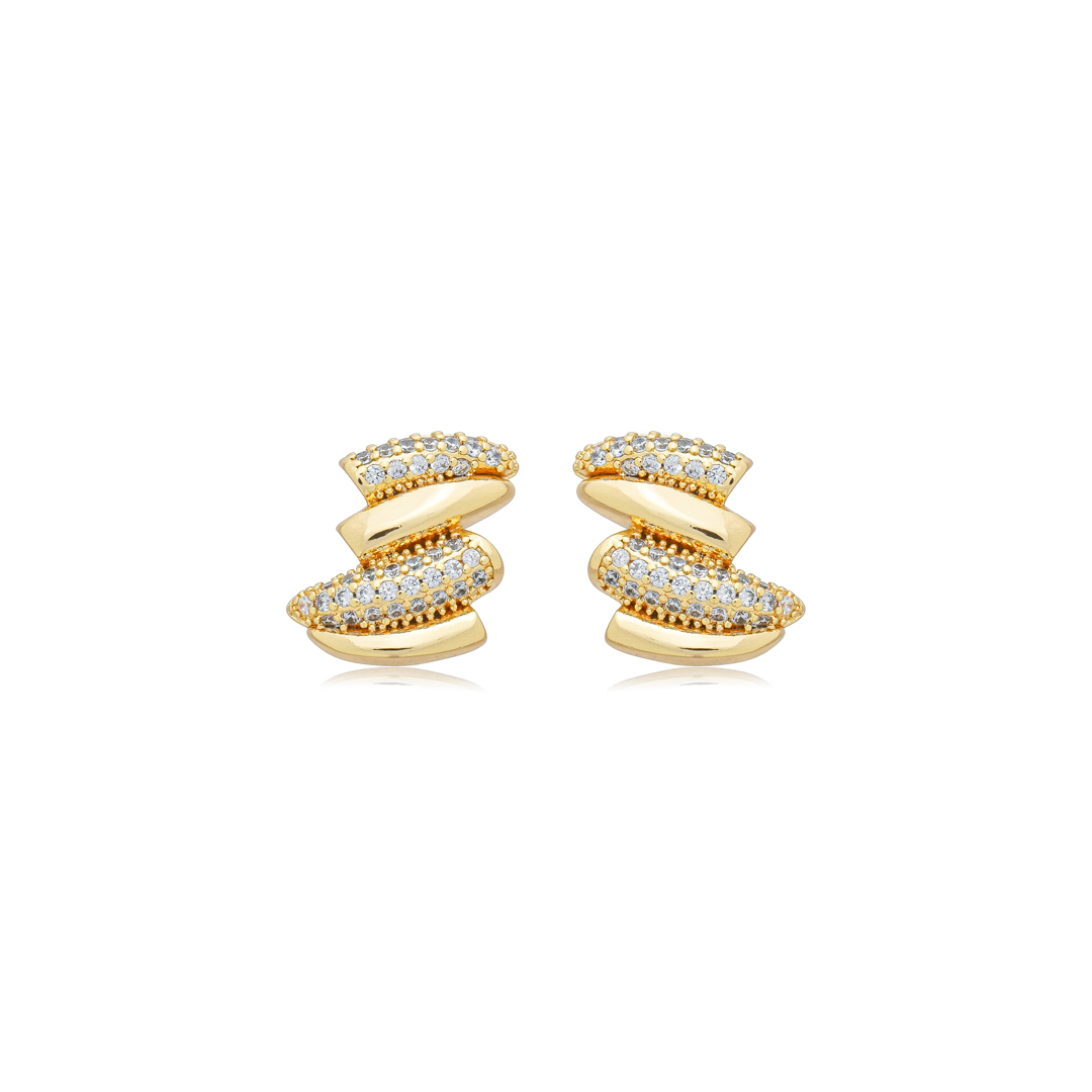 Brinco cravejado de zirconia cristal banho em ouro 18k