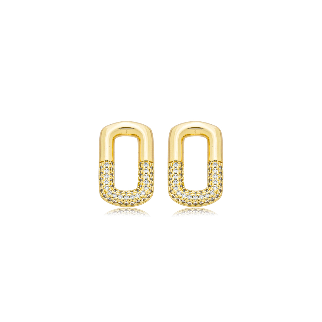Com um design cravejado de zircônias, ele brilha intensamente e adiciona um toque de sofisticação a qualquer look. O banho de ouro de 18k garante durabilidade e brilho duradouro. As zircônias são pedras sintéticas de alta qualidade, criadas para imitar a aparência da diamante. Se você está procurando um acessório de semijoias, este brinco é a escolha certa.
