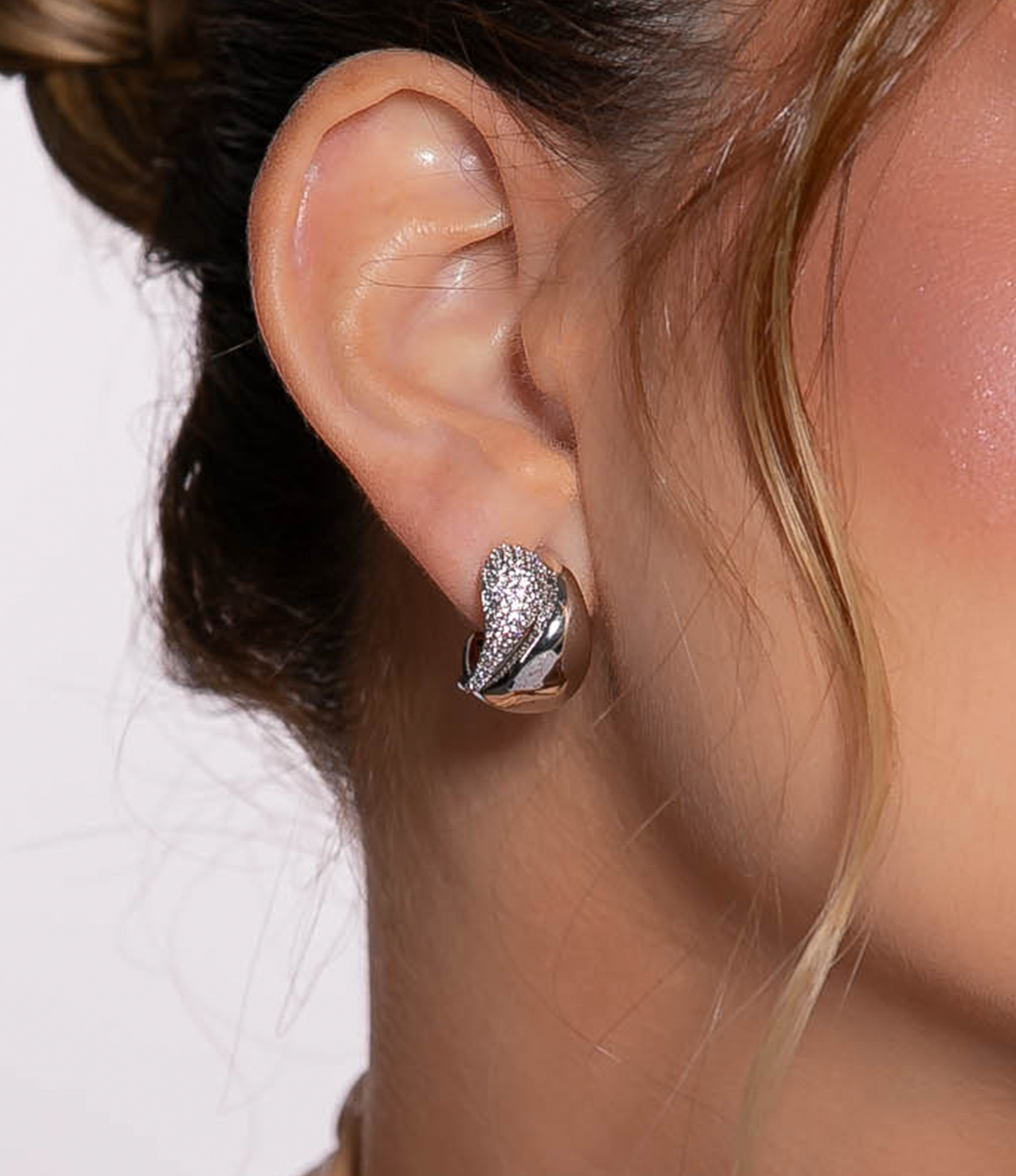 Brinco de argola com detalhes cravejado de zircônia cristal