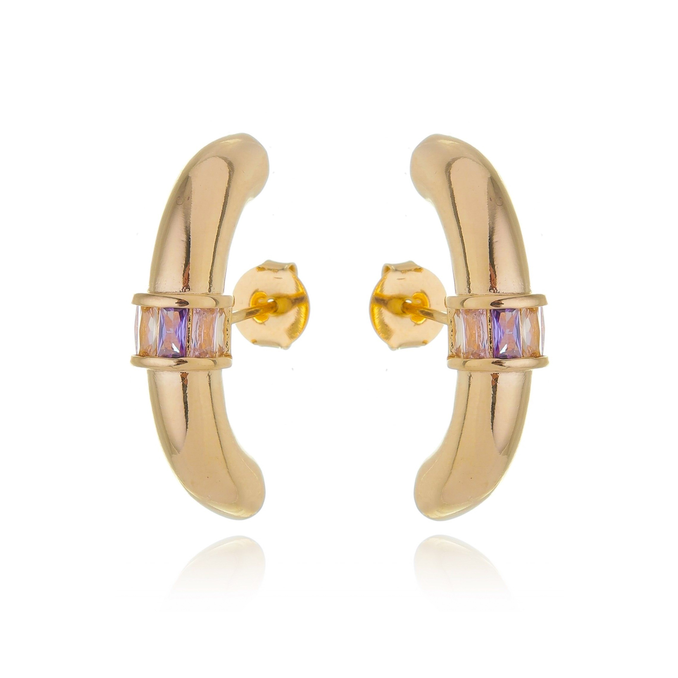 Brinco ear hook dourado com detalhe em zirconia