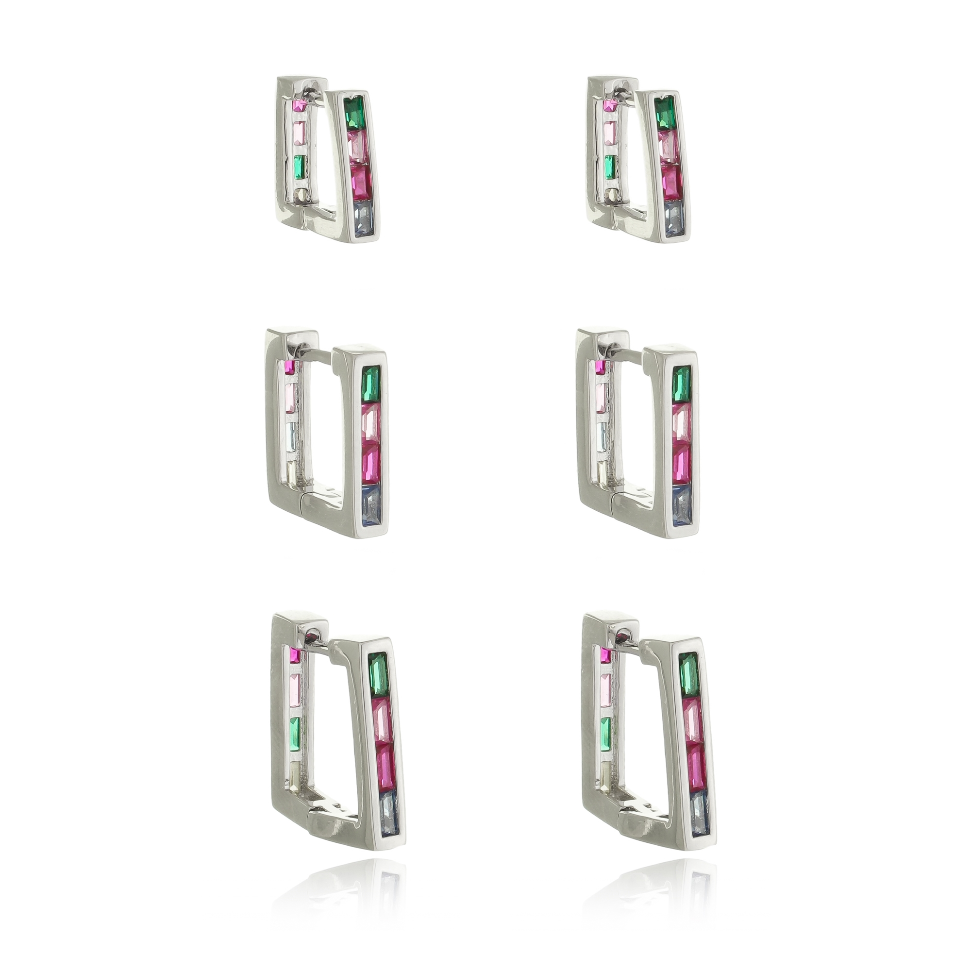 Brinco de trio de argola cravejado de zirconia colorida
