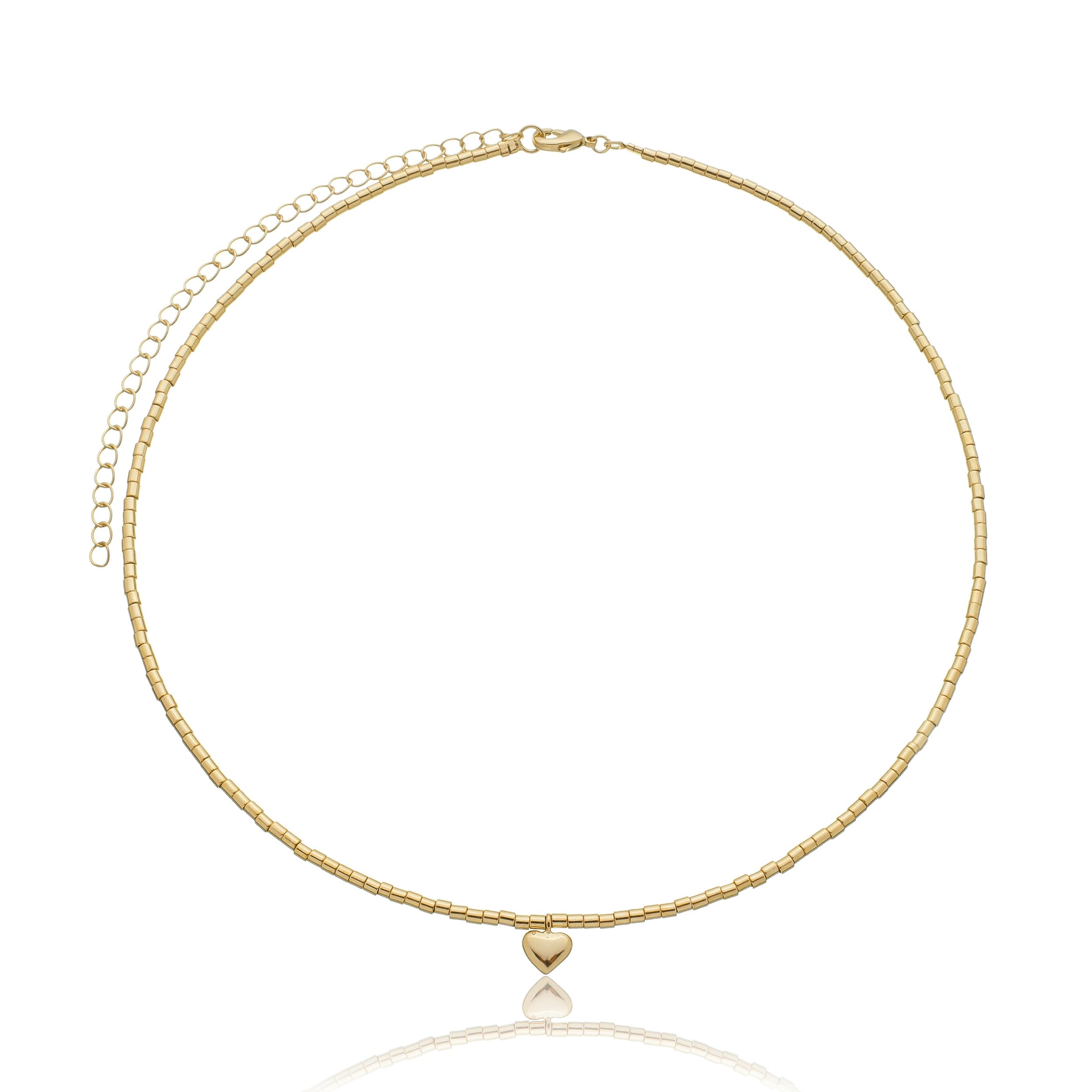 Colar de corrente lisa com pingente de coraçao