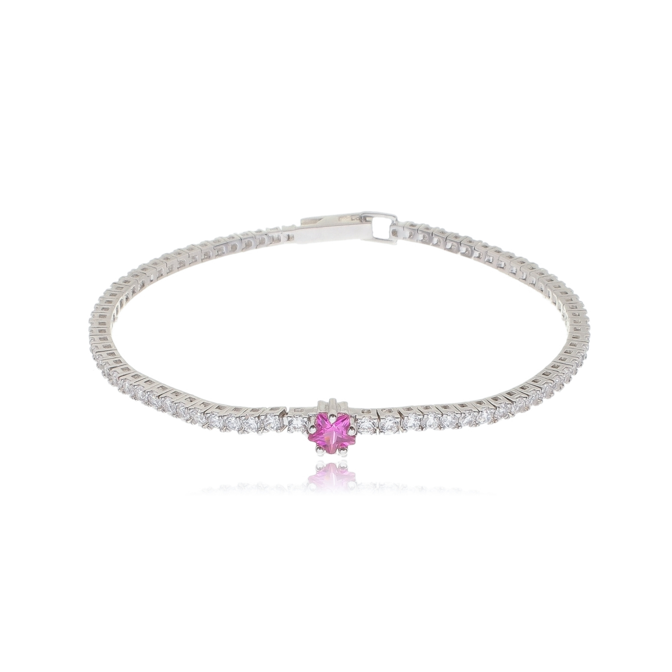 Pulseira de riviera de zirconia pink e cristal