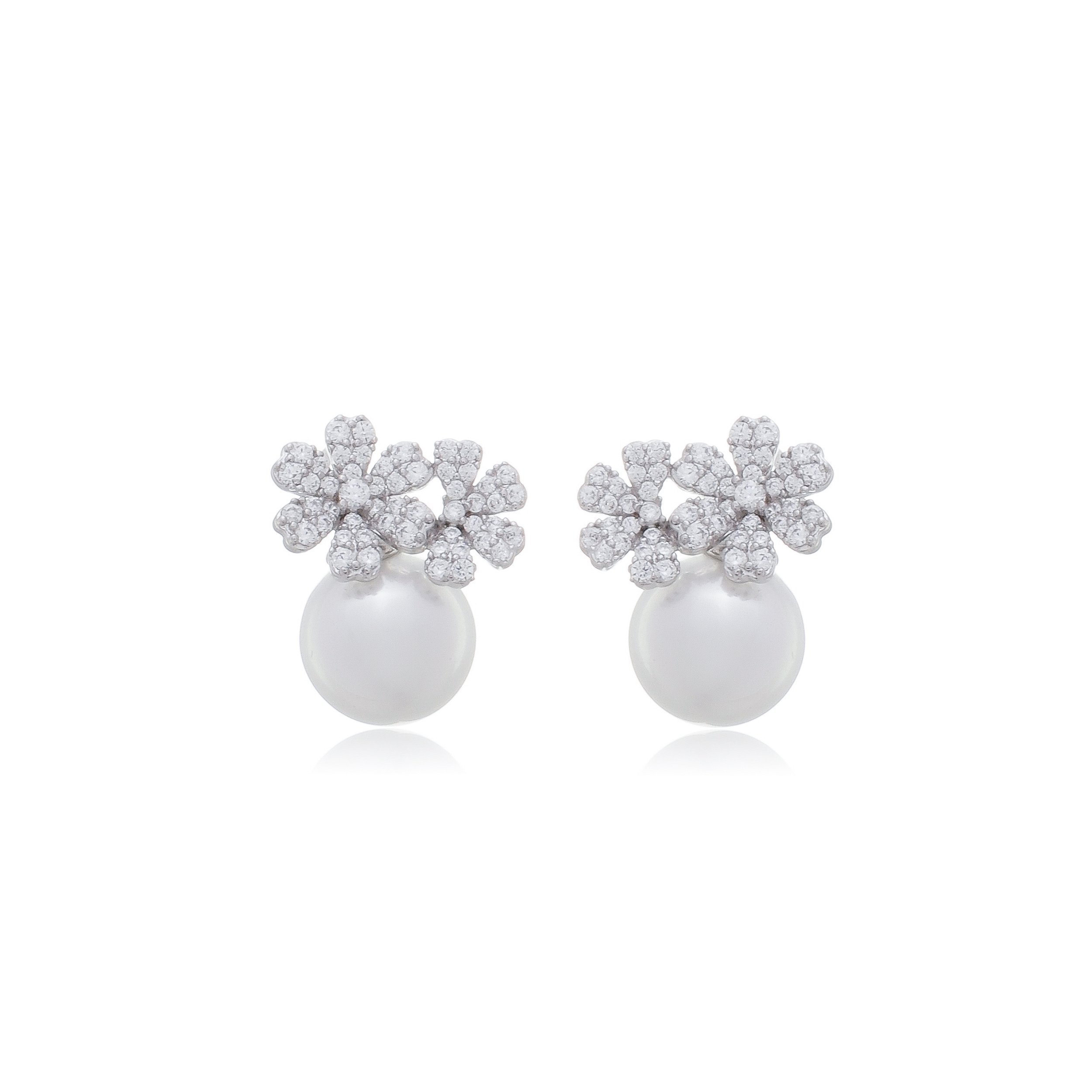 Brinco de base de pérola shell com detalhes cravejado de zircônia cristal