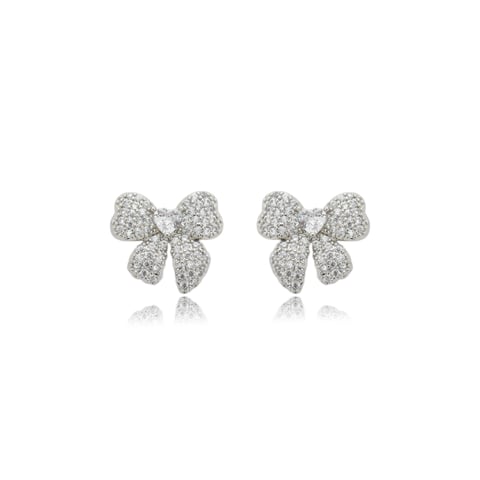 Brinco cravejado com zirconia cristal banho em rodio branco