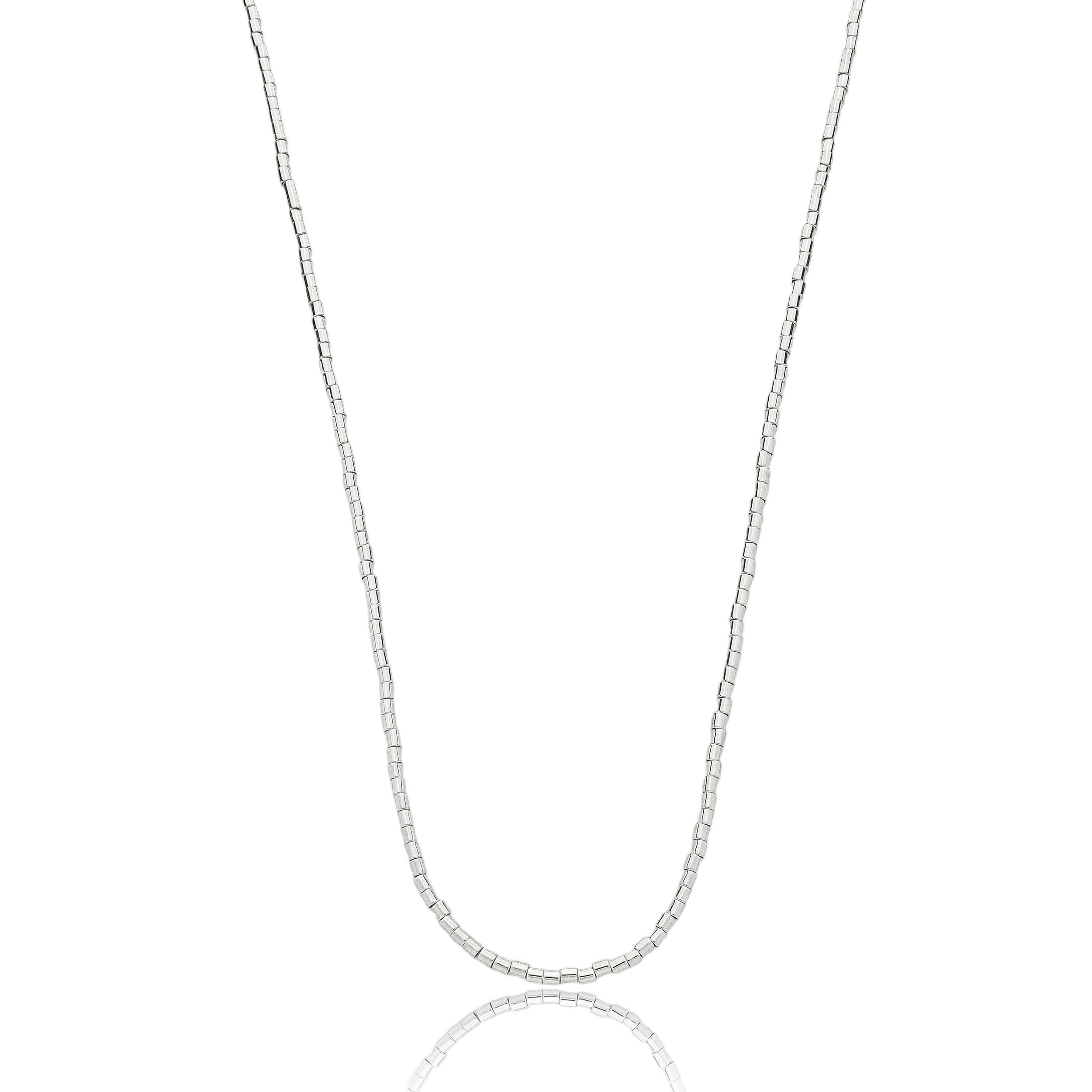 Nosso colar liso é uma peça clássica e versátil, ideal para todas as ocasiões. Com banho de ródio branco de alta qualidade, ele garante brilho duradouro e excelente resistência ao desgaste.
