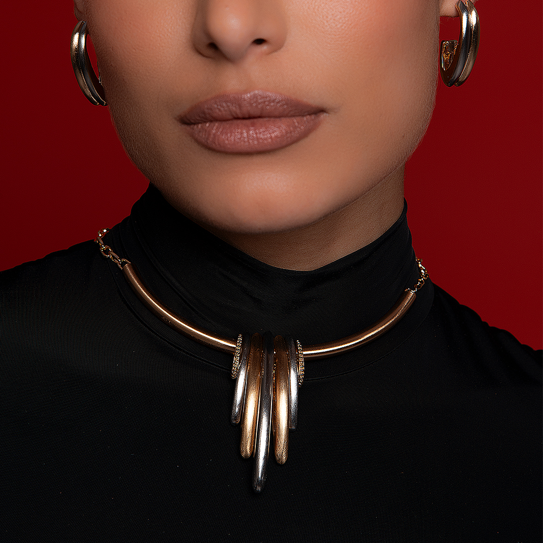 Colar com banho duplo de ouro 18K e ródio branco, ideal para quem busca sofisticação com alta durabilidade. O contraste entre o dourado e o tom prateado confere um visual moderno e elegante, perfeito para diversas ocasiões.