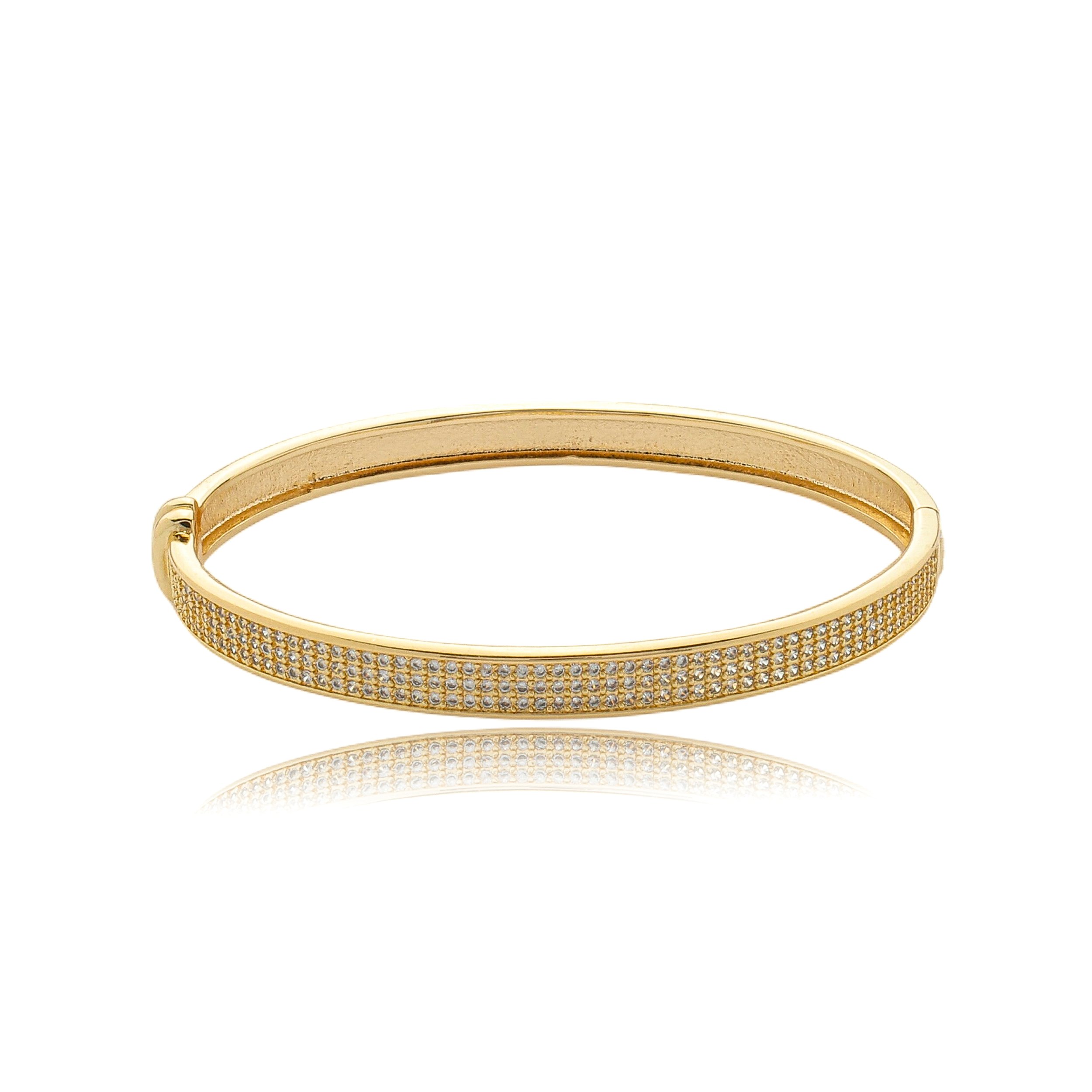 Nosso bracelete é uma peça cravejada de zircônia cristal, sofisticada e atemporal, perfeita para compor qualquer look com elegância. Com banho de ouro 18k, ele oferece um brilho intenso e acabamento refinado, que valoriza ainda mais o seu estilo.