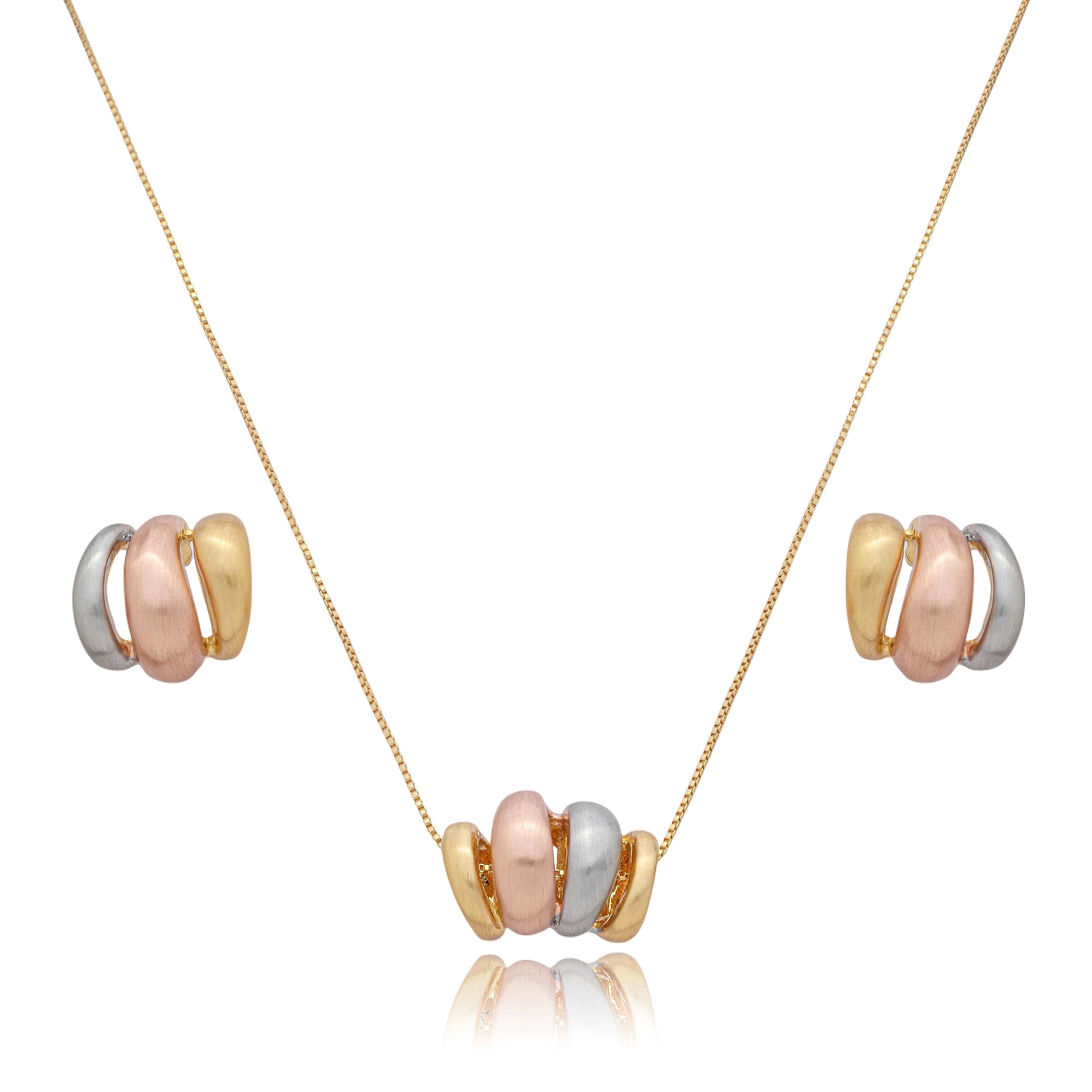 Beleza e sofisticação em cada detalhe! Nosso conjunto de brinco e colar é perfeito para quem busca elegância e qualidade. Cada peça recebe banho triplo de alta durabilidade: ouro 18k, ródio branco e rose gold, garantindo brilho intenso, acabamento impecável e maior resistência ao desgaste.