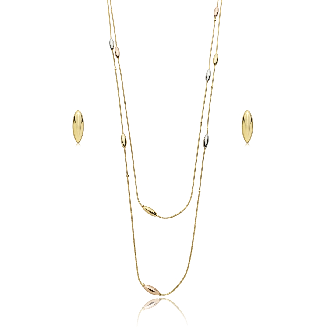 Beleza e sofisticação em cada detalhe! Nosso conjunto de brinco e colar é perfeito para quem busca elegância e qualidade. Cada peça recebe banho triplo de alta durabilidade: ouro 18k, ródio branco e rose gold, garantindo brilho intenso, acabamento impecável e maior resistência ao desgaste.