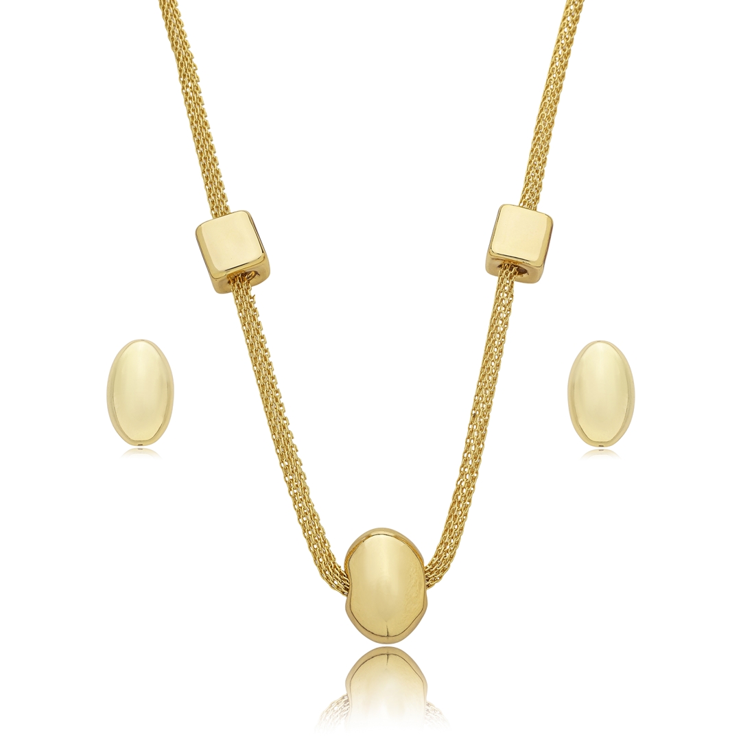 Conjunto delicado e elegante, com banho de ouro 18k que garante brilho intenso e acabamento sofisticado. Peças resistentes à oxidação, com alta durabilidade e visual moderno. Ideal para ocasiões especiais ou para dar um toque refinado ao look do dia a dia.
