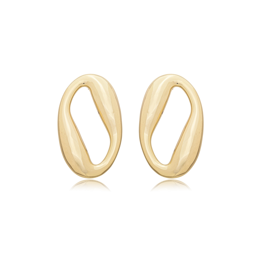 Brinco dourado liso banho em ouro 18K