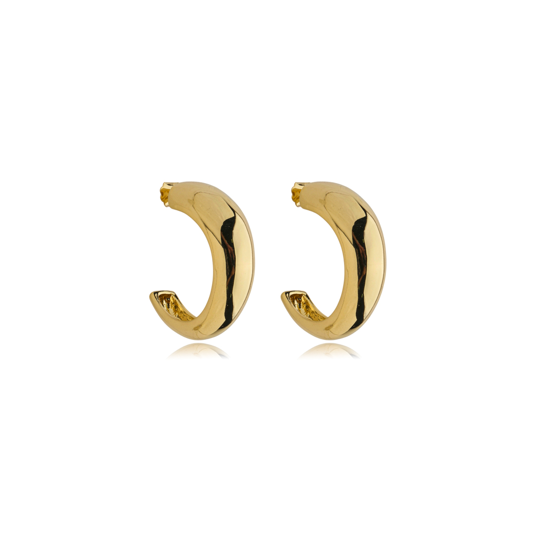Brinco de argola dourado liso banho em ouro 18K