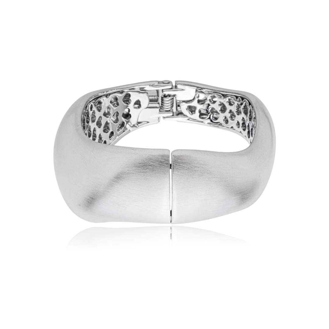 Este bracelete acetinado liso é uma peça de sofisticação discreta e elegância atemporal. Seu acabamento acetinado confere uma textura suave e refinada, enquanto o banho em ródio branco adiciona um brilho sutil e duradouro, garantindo resistência e proteção à peça. Ideal para quem aprecia a beleza nos detalhes, é uma opção ideal para quem busca um acessório sofisticado e moderno.