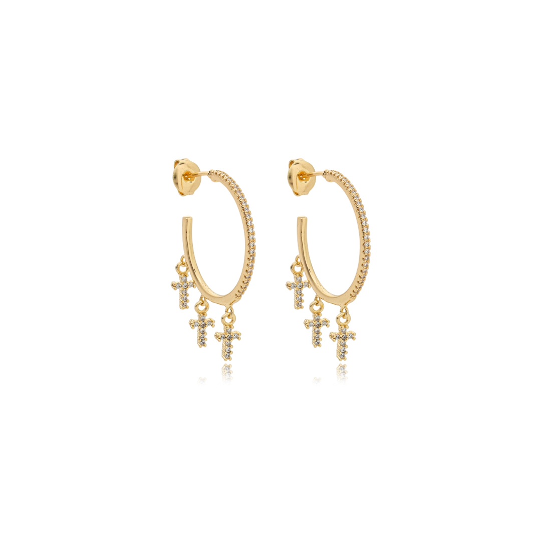 Brinco de argola cravejado de zirconia cristal banho em ouro 18k
