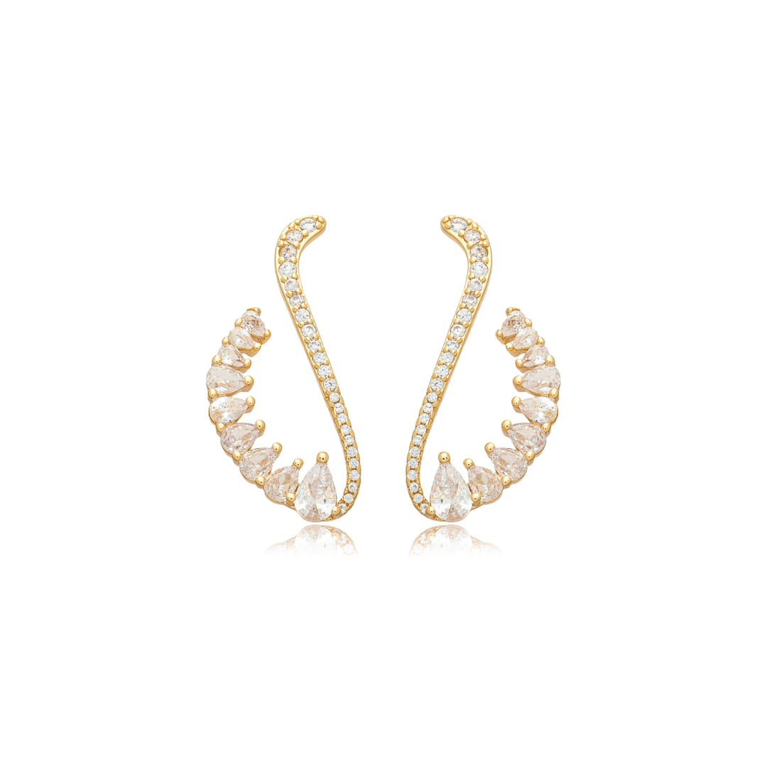 Brinco de argola cravejado de zirconia cristal banho em ouro 18k