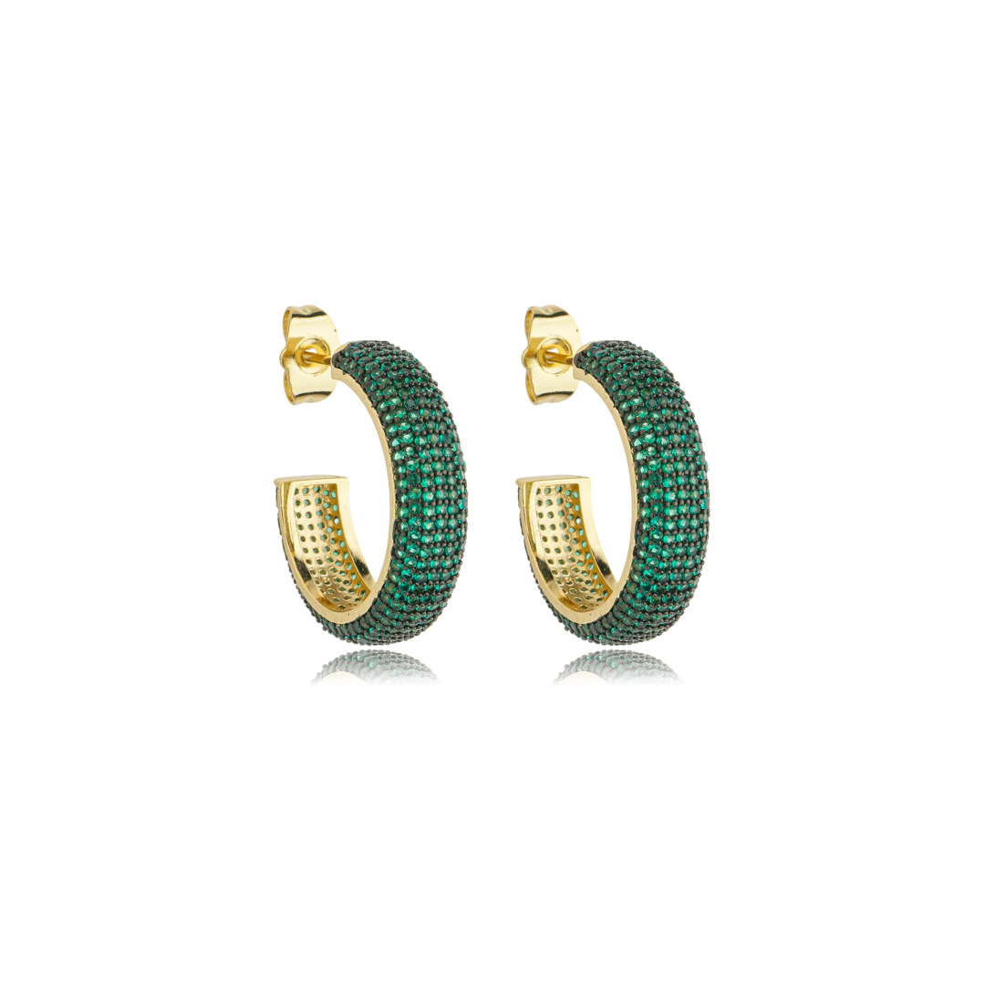 Brinco de argola cravejado de zirconia esmeralda banho em ouro 18k