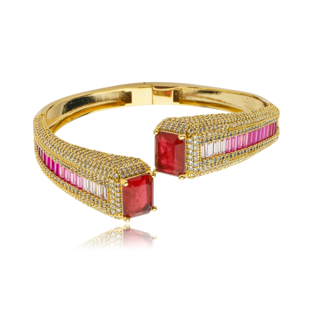 Bracelete cravejado de zircônia cristal com detalhes em zircônia e pedra fusion pink