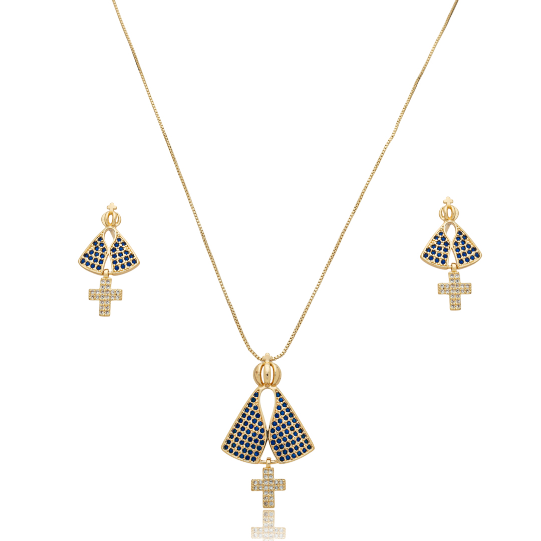 Deslumbre-se com nosso novo conjunto de brinco e colar, tem design cravejado de zircônias que são pedras sintéticas de alta qualidade, criadas para imitar a aparência da diamante.Este conjunto é muito mais do que uma simples peça de joalharia; é um símbolo de elegância e estilo refinado. Seu design exuberante e sua qualidade excepcional fazem dele um acessório indispensável para qualquer ocasião especial.Compre agora online.