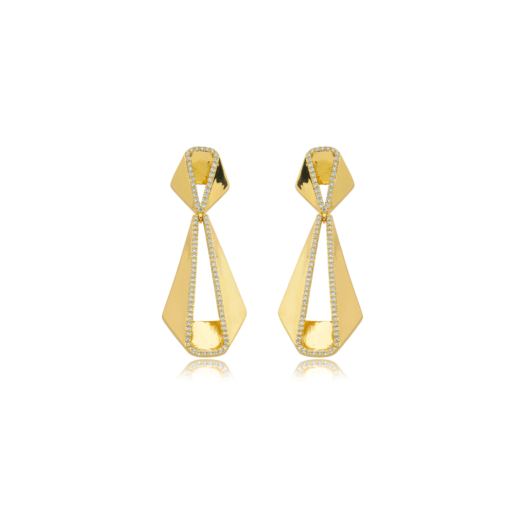 Brinco cravejado de zirconia cristal banho em ouro 18k