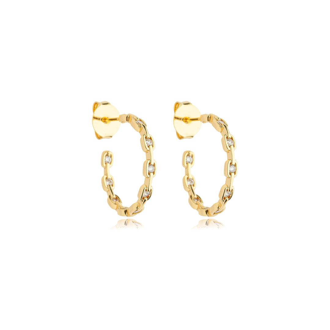 Brinco de argola com zirconia cristal banho em ouro 18k