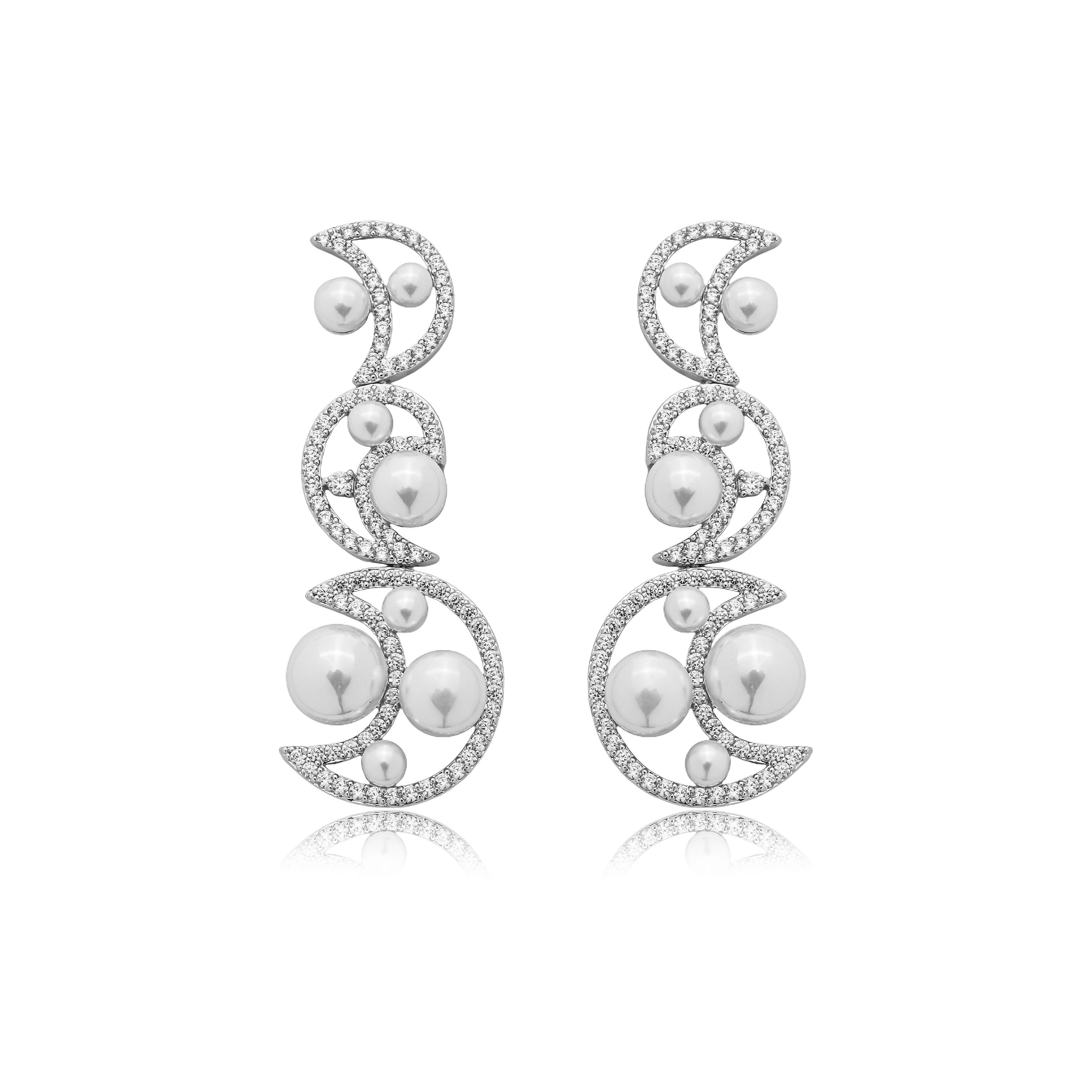 Brinco com pérola shell cravejado de zircônia cristal