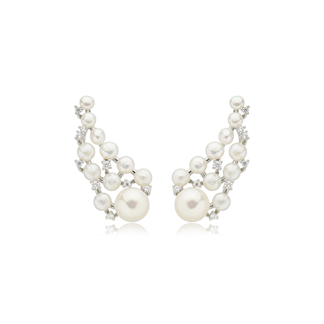 Brinco de pérola banho em ródio branco