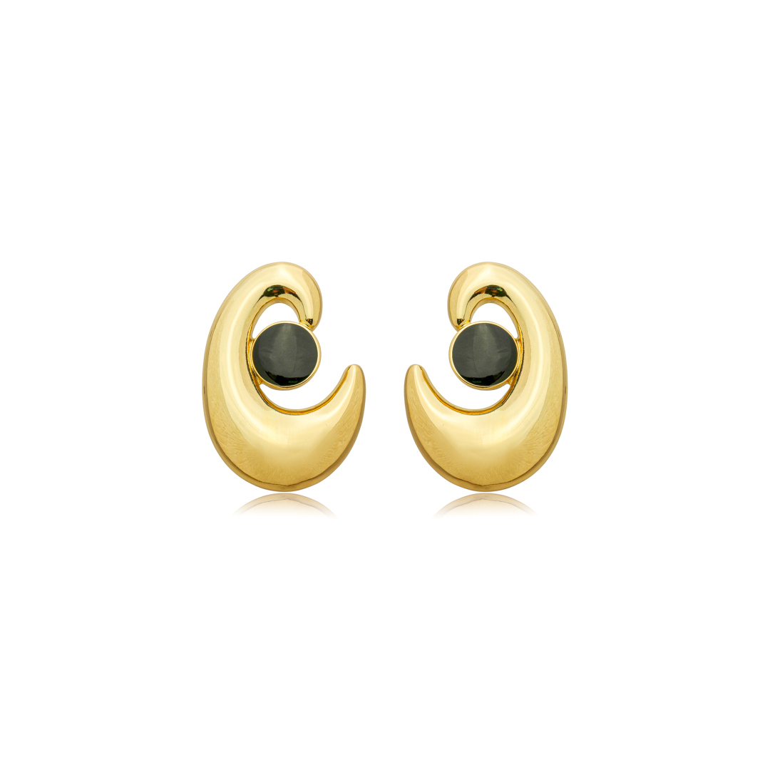 Brinco liso esmaltado banho em ouro 18k