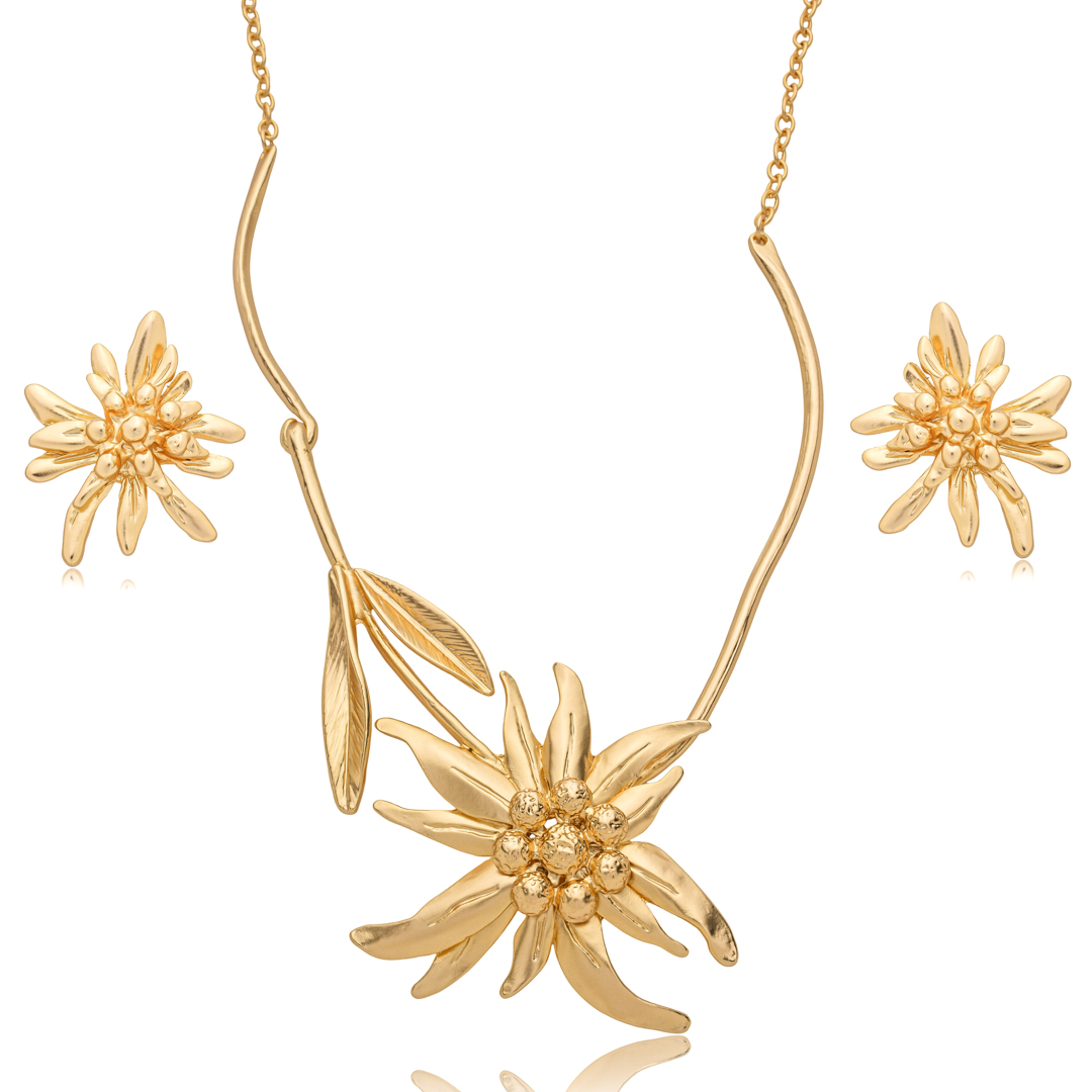 Conjunto de brinco e colar com banho acetinado