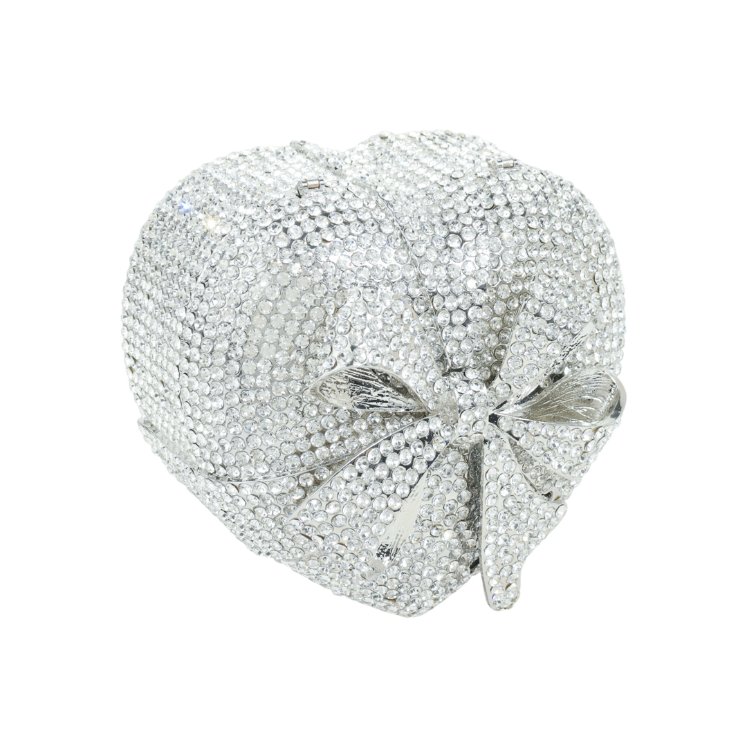Bolsa de cluth de coração em metal cravejada de cristais com alça removível