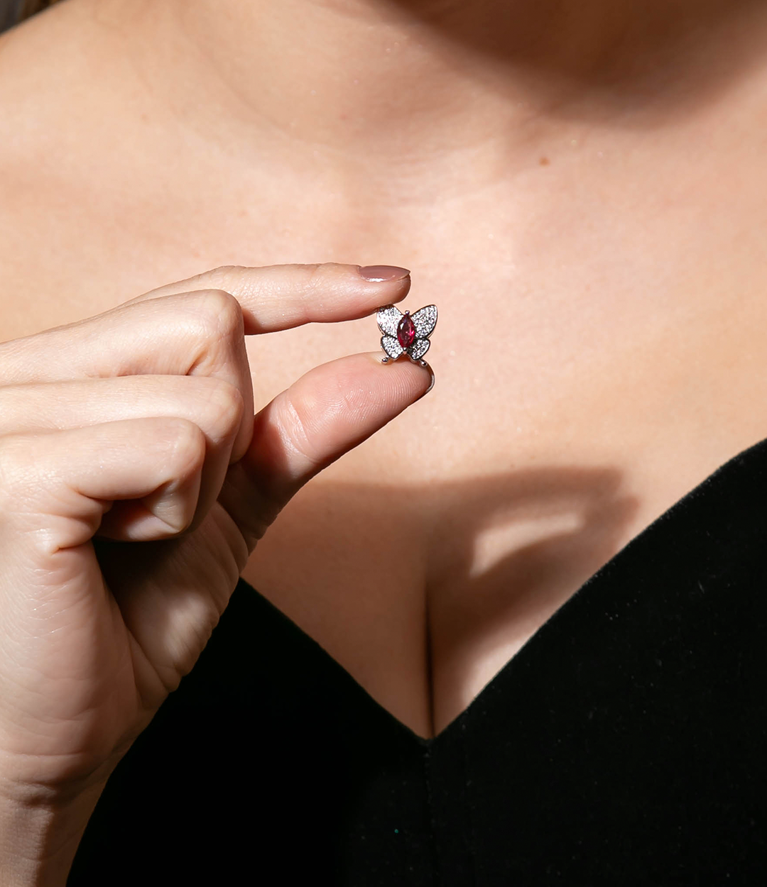 Pingente de borboleta cravejado de zirconia rosa banho em rodio branco