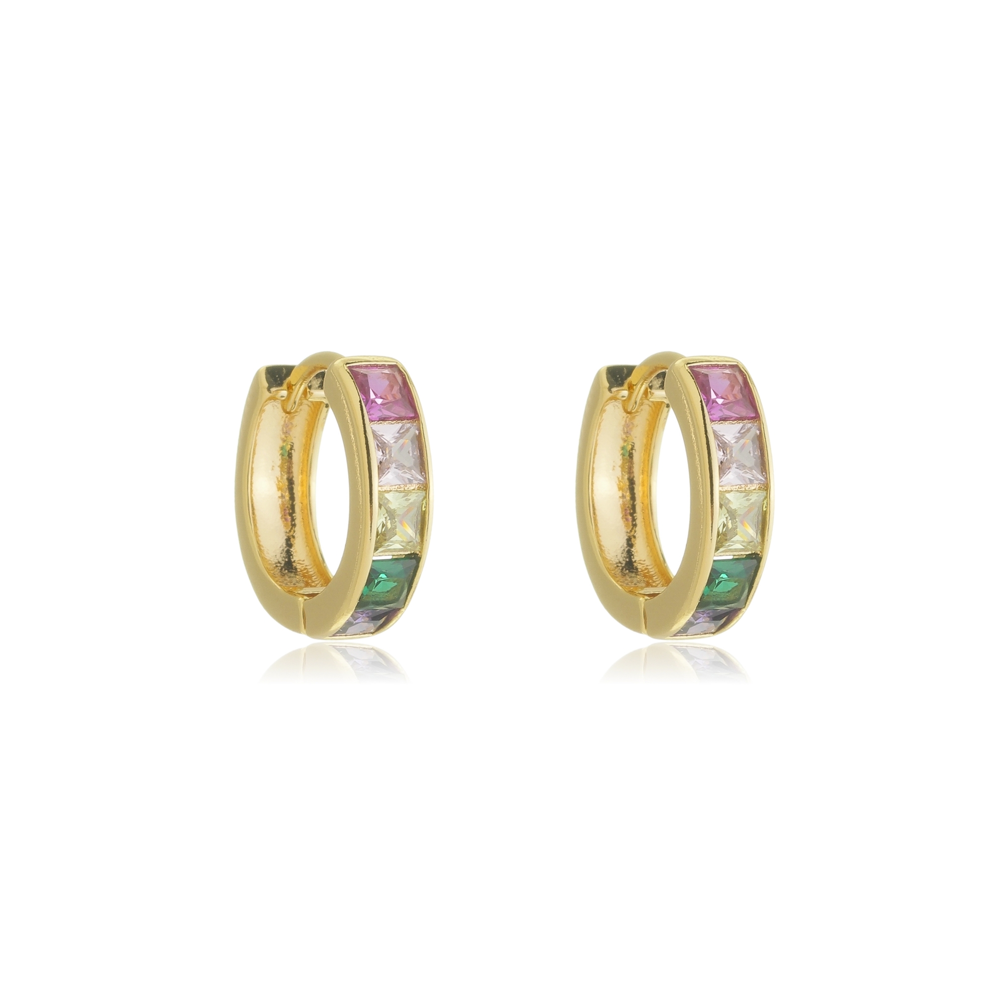 Brinco de argola cravejado de zirconia rosa, verde e lilás